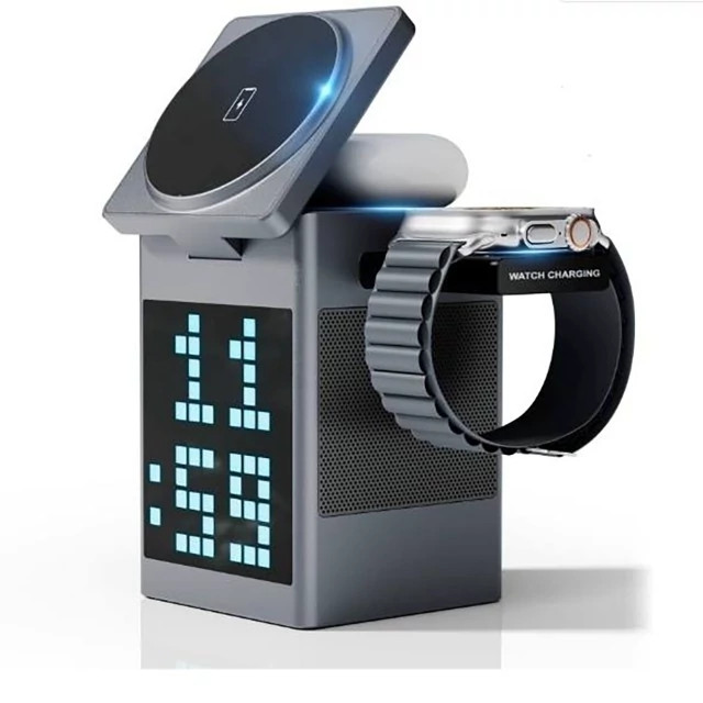 Wireless charger with Bluetooth speaker and LED digital clock S5