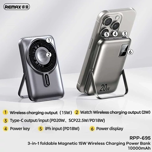 پاوربانک مگنتی REMAX RPP-695 از شارژ بیسیم مغناطیسی با توان 15 وات پشتیبانی میکند. همچنین با درگاه تایپسی و خروجی 22.5 وات، شارژ سریعتری نسبت به مدلهای عادی ارائه میدهد. این قابلیت با استانداردهایی نظیر PD3.0، QC3.0، Huawei SCP و iPhone PD20W سازگار است. ...