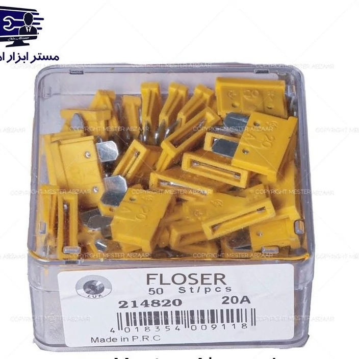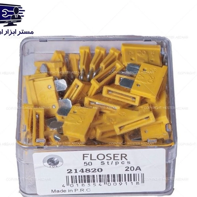 فیوز 20 آمپر لیسانس آلمان زرد کدر ماشین خودرو ایرانی پراید کوییک تیبا برند فلوزر مدل FLOSER 20A