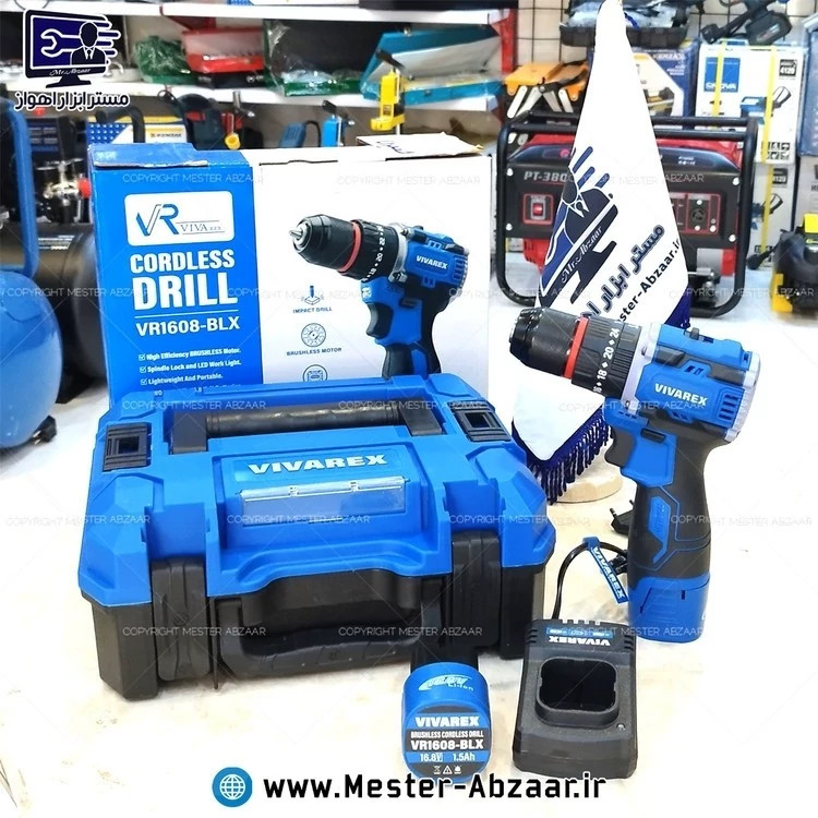 دریل پیچ گوشتی براشلس چکشی سه نظام فلزی شارژی 16.8 ولت 2 باتری ویوارکس با کیف صنعتی مدل VIVAREX VR1608-BLXدریل پیچ گوشتی براشلس چکشی سه نظام فلزی شارژی 16.8 ولت 2 باتری ویوارکس با کیف صنعتی یک سال گارانتی مدل VIVAREX VR1608-BLX