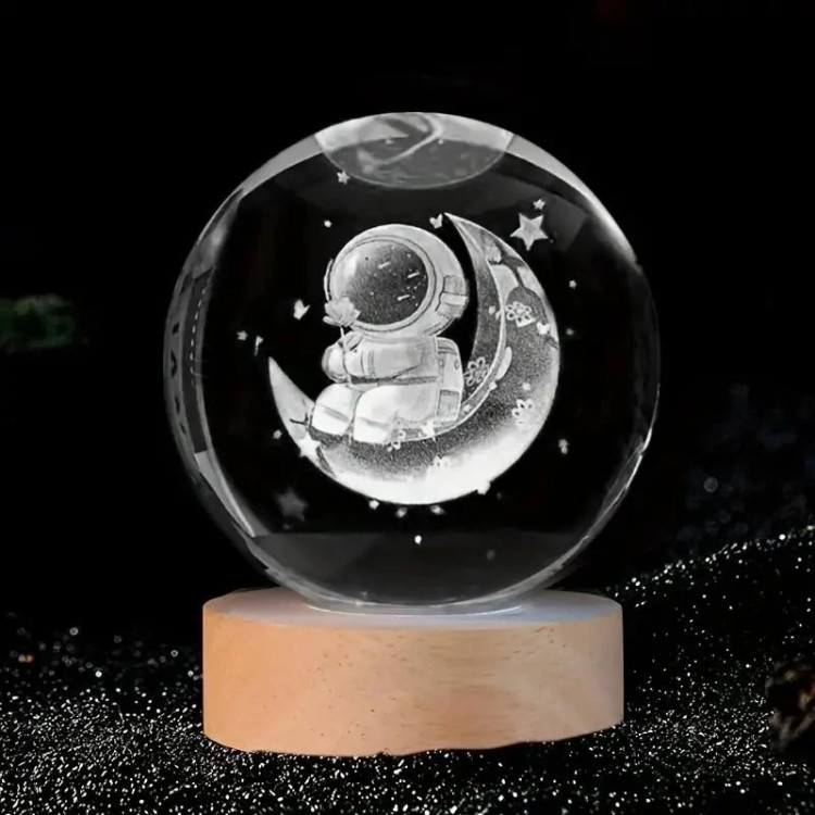 چراغ خواب گوی کریستال کد 145 با پایه چوبی