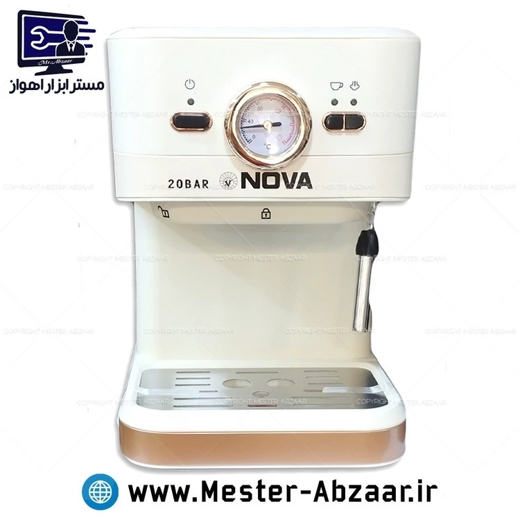 اسپرسو و قهوه ساز 2200 وات نوا پمپ 20 بار سفید و مشکی مدل NOVA NCM-190