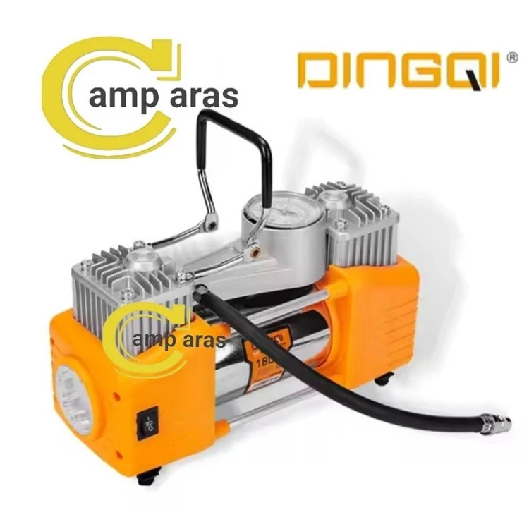 پمپ باد 2 سیلندر دینگی 12ولت DinGQi چراغ قوه دار دوحالته مدل 108004 با توان خروجی 12 ولت،قدرت 180 وات...