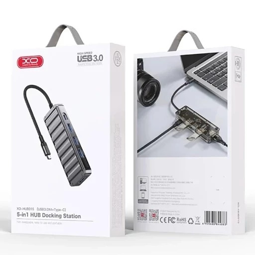 هاب مک بوک ایکس او مدل HUB015 از 5 پورت کاربردی تشکیل شده که شامل یک درگاه USB-C و 4 درگاه USB3.0 میباشد و امکانات قابل قبولی را در اختیار کاربر قرار میدهد. درگاه تایپ سی بعنوان ورودی نیز مورد استفاده قرار میگیرد.