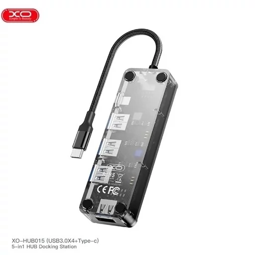 هاب مک بوک ایکس او مدل HUB015 از 5 پورت کاربردی تشکیل شده که شامل یک درگاه USB-C و 4 درگاه USB3.0 میباشد و امکانات قابل قبولی را در اختیار کاربر قرار میدهد. درگاه تایپ سی بعنوان ورودی نیز مورد استفاده قرار میگیرد.