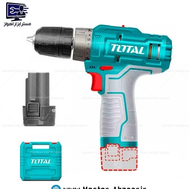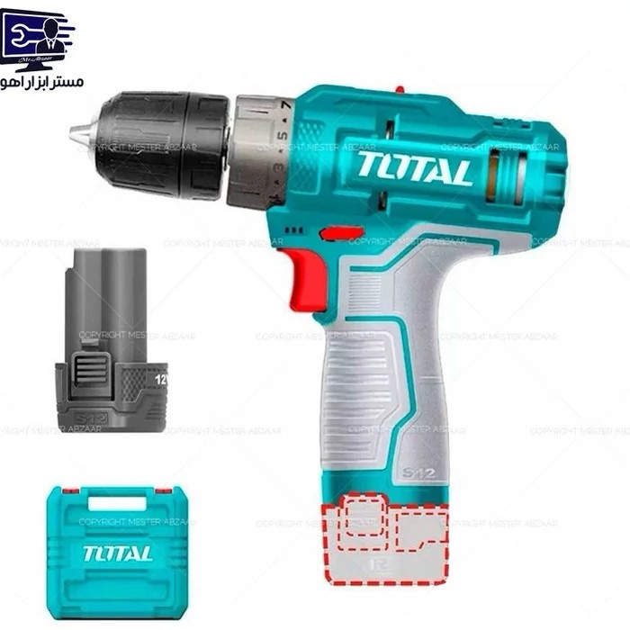 1دریل شارژی 12 ولت دو باتری توتال اصلی سبز با کیف مدل TOTAL TDLI12202