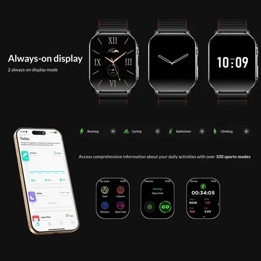 صفحهنمایش 2.01 اینچی AMOLED خمیده با رزولوشن 410*502 پیکسل، تصاویری زنده و شفاف ارائه میدهد که حتی در جزئیات کوچک نیز بینقص است. روشنایی 1200 نیتی این نمایشگر، خوانایی کامل را حتی در نور مستقیم خورشید تضمین میکند، بنابراین چه در فضای باز ورزش کنید و چه در حال حرکت باشید، اطلاعات بهراحتی قابل مشاهده است. شیشه سخت 2 بعدی مقاومت بالایی در برابر خطوخش دارد و قابلیت Always-on Display امکان دسترسی سریع به زمان و اطلاعات کلیدی را بدون نیاز به لمس فراهم میکند. ..