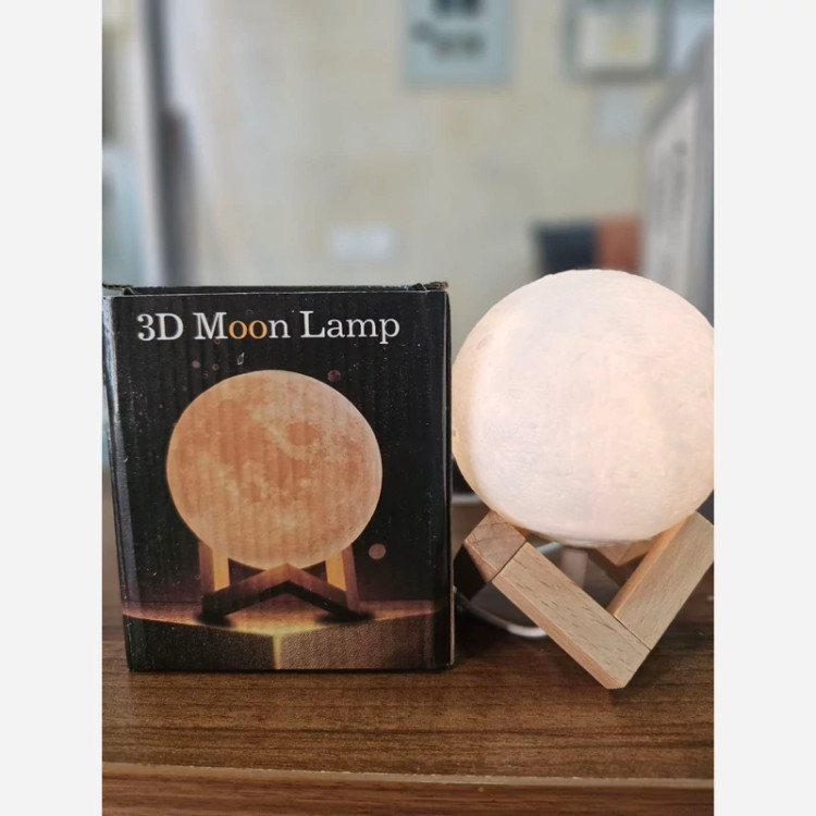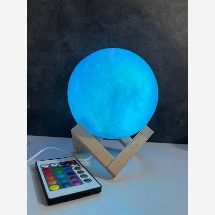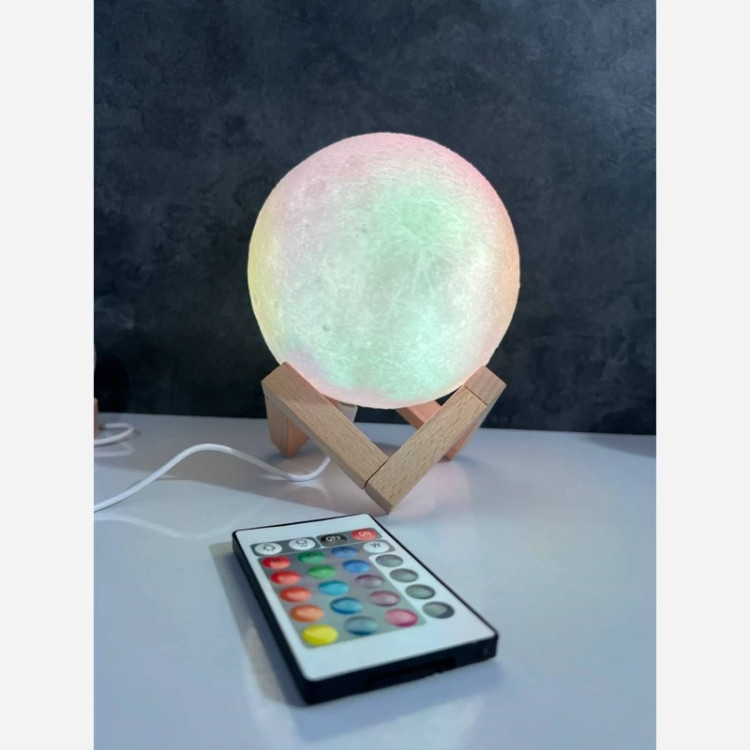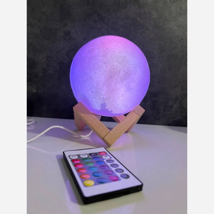 چراغ خواب ریموت دار و لمسی طرح ماه با پایه چوبی