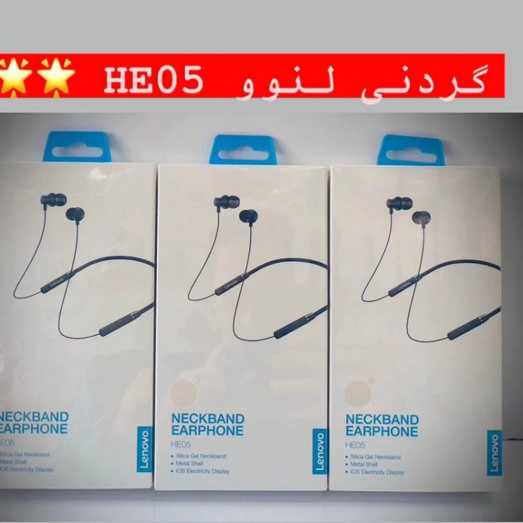 هدفون هندزفری گردنی بی سیم لنوو HE05 اصلی اورجینال کیفیت عالی نگهداری شارژ مناسب برند معتبر LENOVO
