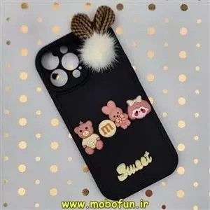 قاب گوشی iPhone 13 Pro Max آیفون طرح سیلیکونی ژله ای سه بعدی برجسته عروسکی محافظ لنز دار پام پام