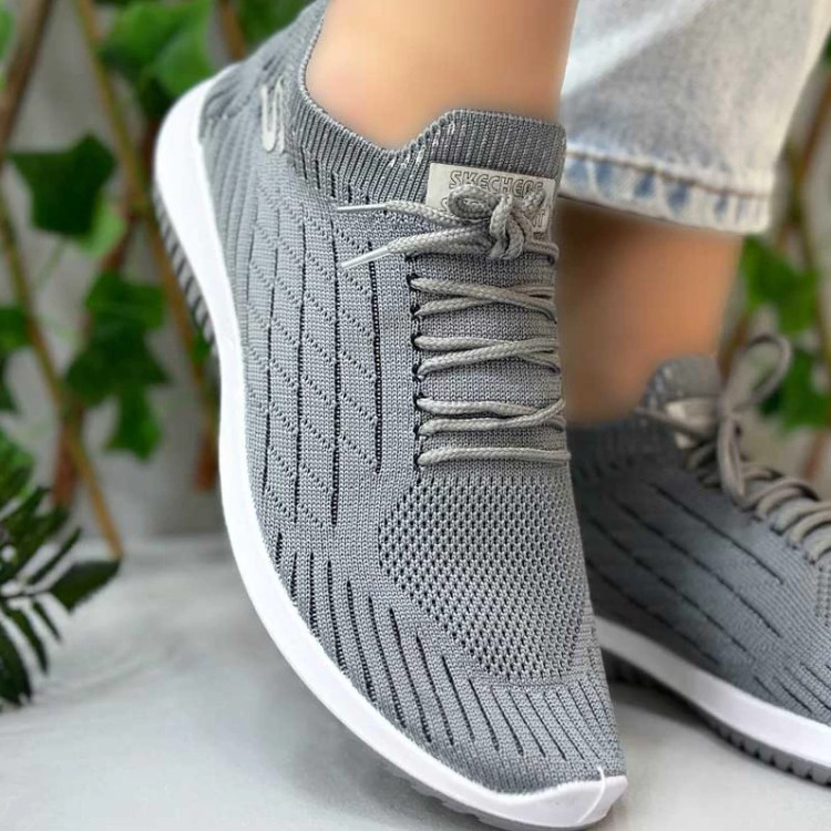 کتونی زنانه و مردانه اسکیچرز بنددار طوسی