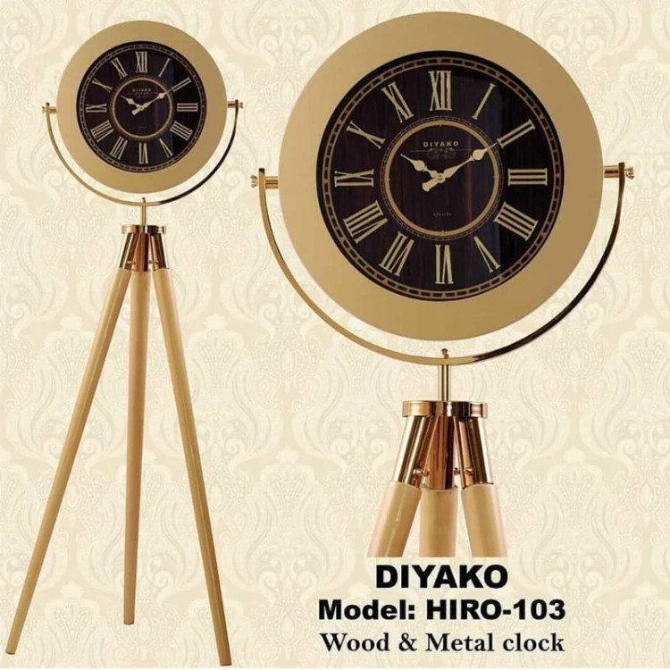 این کالا در حین سادگی بسیار مدرن و شیک میباشد. این محصول از ساعت به پایه ها بصورت پیچ و مهره ای بسته میشود , به همین خاطر برای جابجایی بسیار راحت است. هر پایه چوبی بر طبق شماره درج شده روی آن به همان شماره روی سه پایه فلزی متصل میشود.
