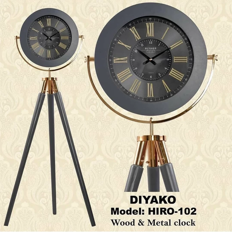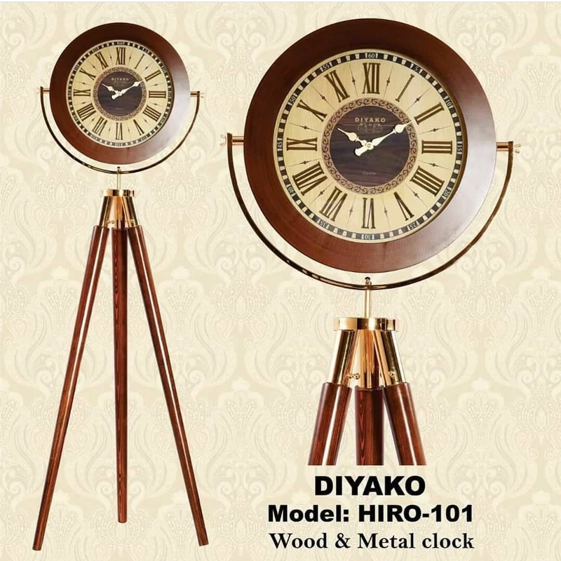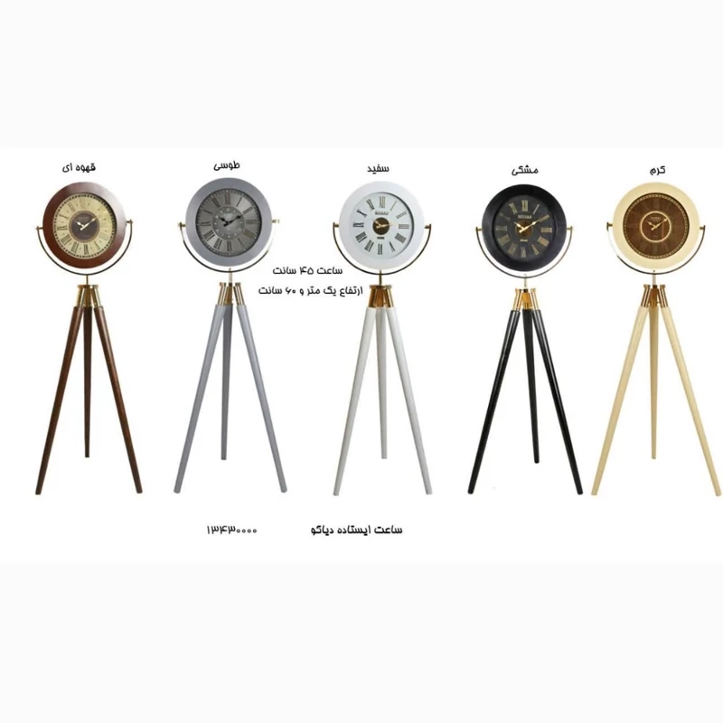 این کالا در حین سادگی بسیار مدرن و شیک میباشد. این محصول از ساعت به پایه ها بصورت پیچ و مهره ای بسته میشود , به همین خاطر برای جابجایی بسیار راحت است. هر پایه چوبی بر طبق شماره درج شده روی آن به همان شماره روی سه پایه فلزی متصل میشود.