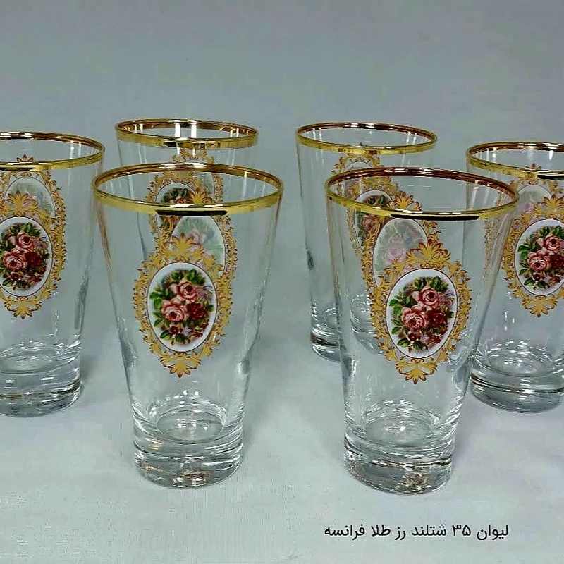 لیوان بلند 35 لومینارک فرانسه مدل شتلند رز طلا بسته بندی 6 عددی