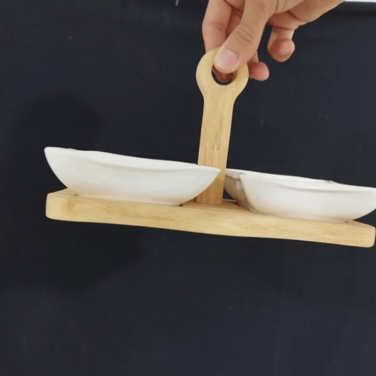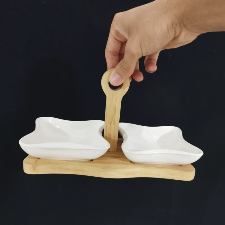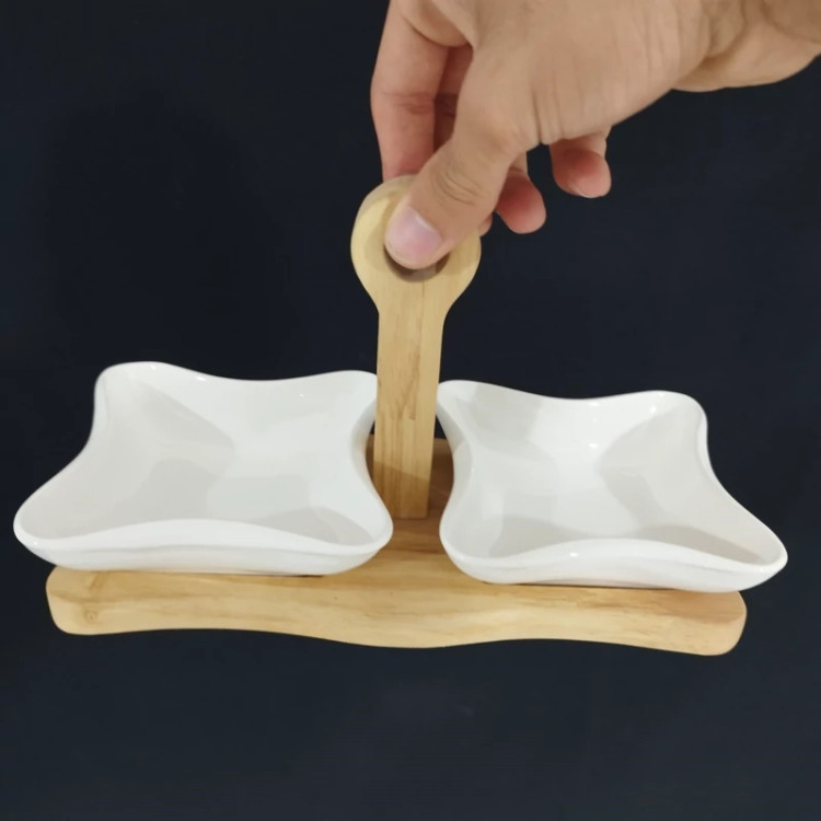 2 پیاله مربع سرامیکی بهمراه استند چوبی