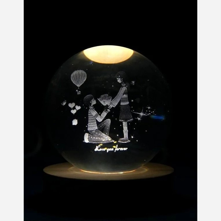 چراغ خواب گوی کریستال کد 144 با پایه چوبی