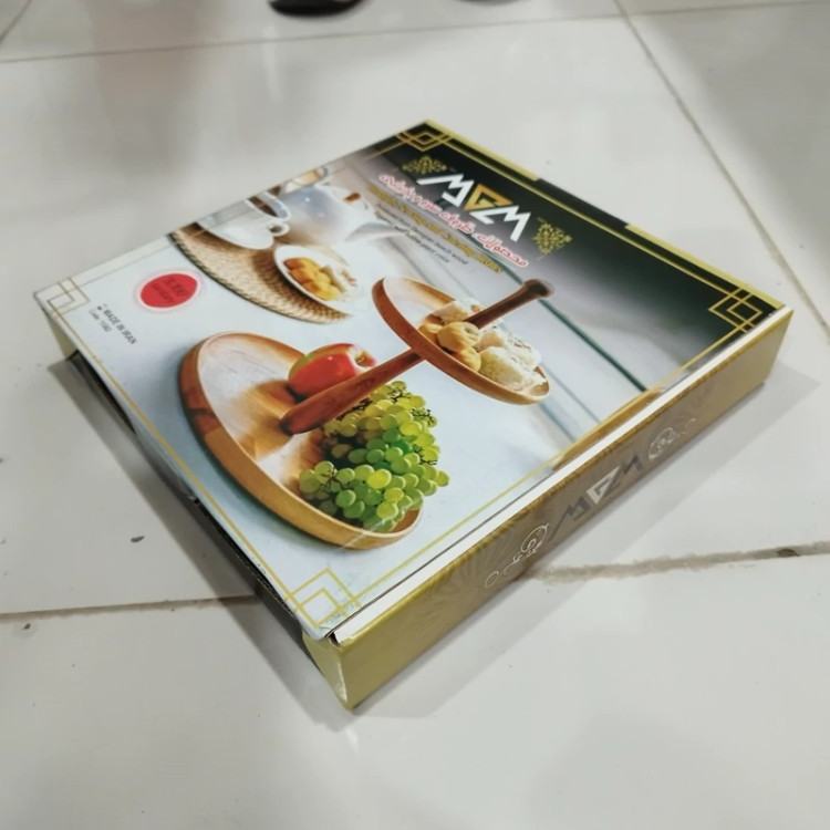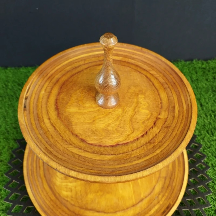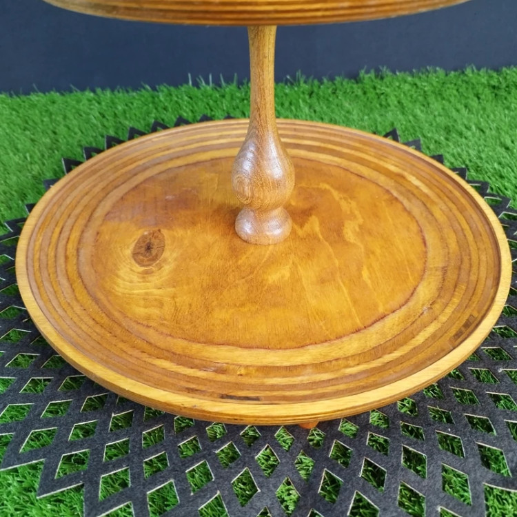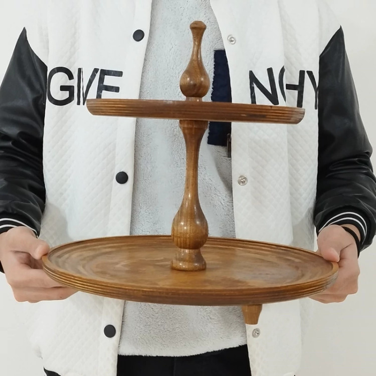 شیرینی خوری 2 طبقه چوبی گرد از دو صفحه چوبی در 2 سایز مختلف برای سرو شیرینی برای استفاده در روی میز پذیرایی می باشد.