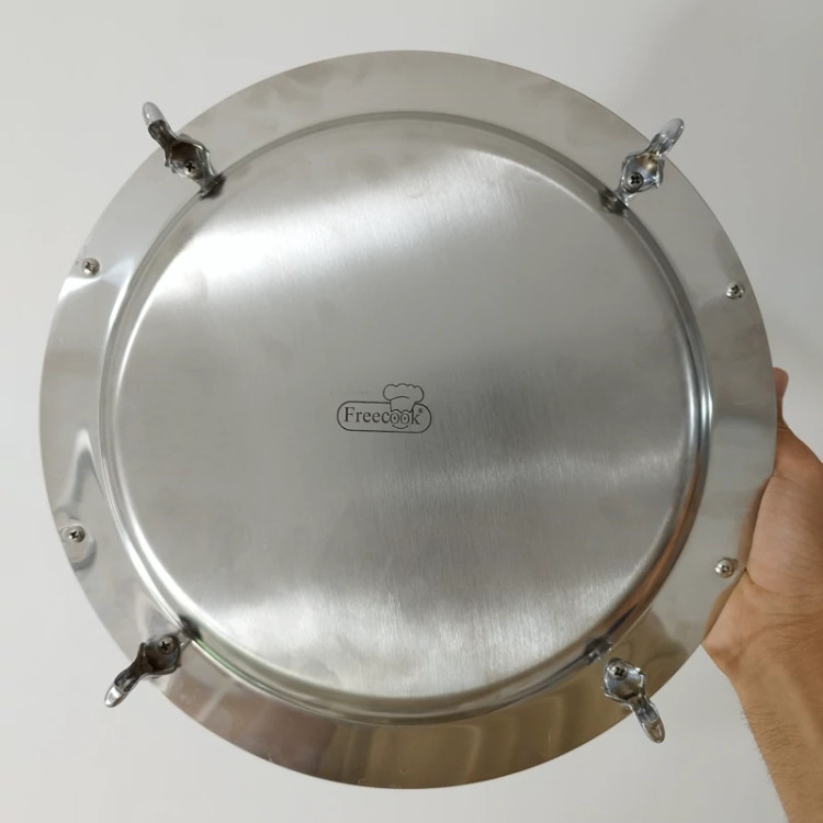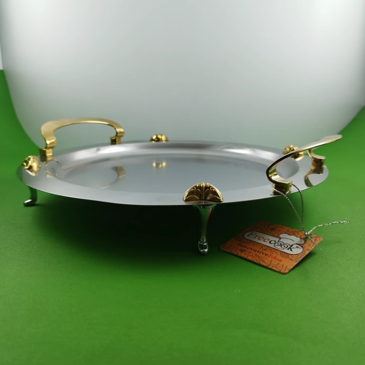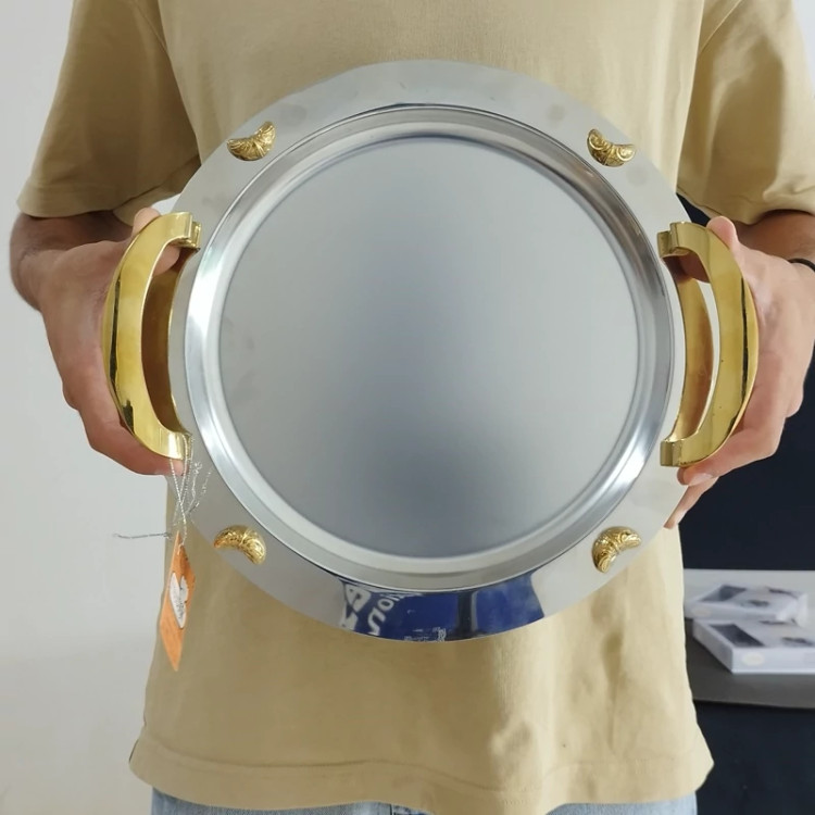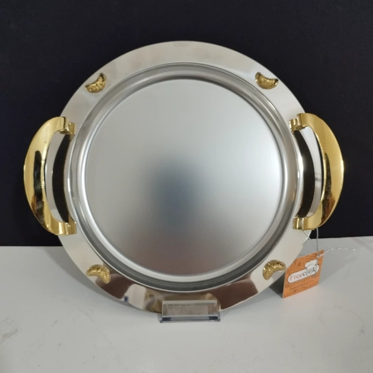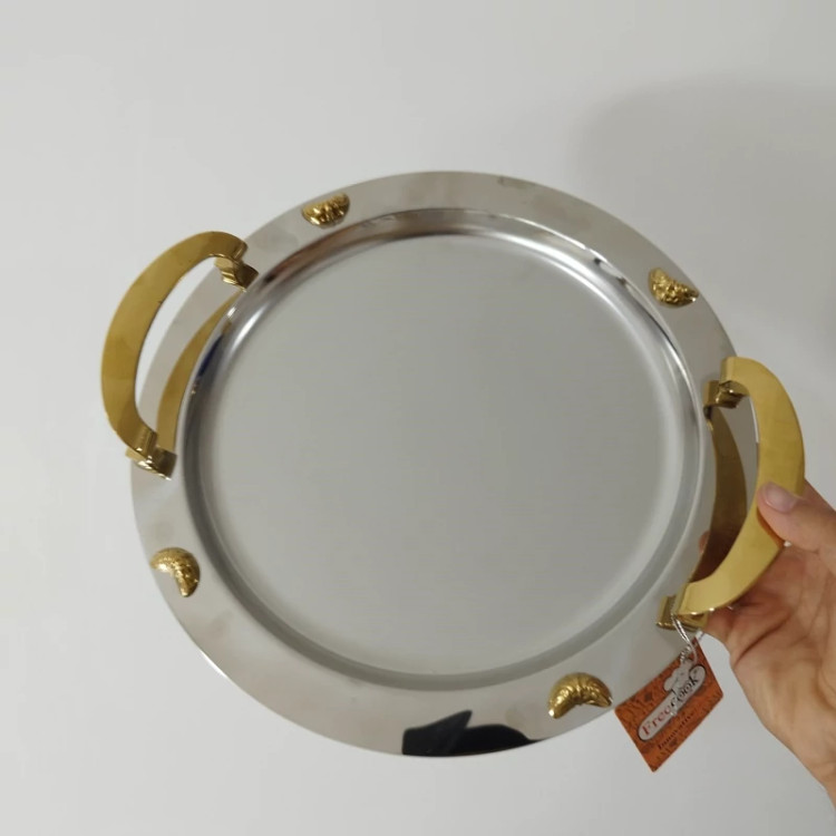 سینی استیل گرد فری کوک مدل ساده دسته طلایی کد 0077 ارسال رایگان