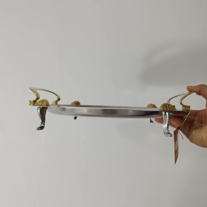 سینی استیل گرد فری کوک مدل ساده دسته طلایی کد 0077 ارسال رایگان