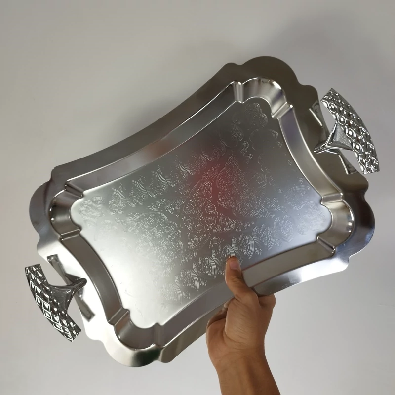 سینی های استیل 18/10 ضد زنگ ریور دارای ضخامت 0.8 ، داخل طرح دار ، پولیش تمیز بهمراه جعبه کادویی دسته دار و بسیار شیک درطرح ها و اندازه های مختلف جهت استفاده در مهمانی ها و دورهمی ها می باشد