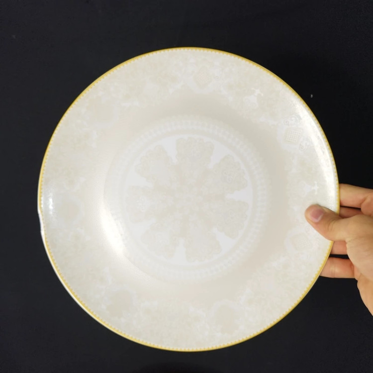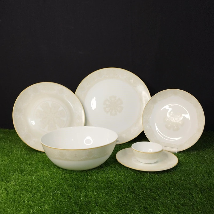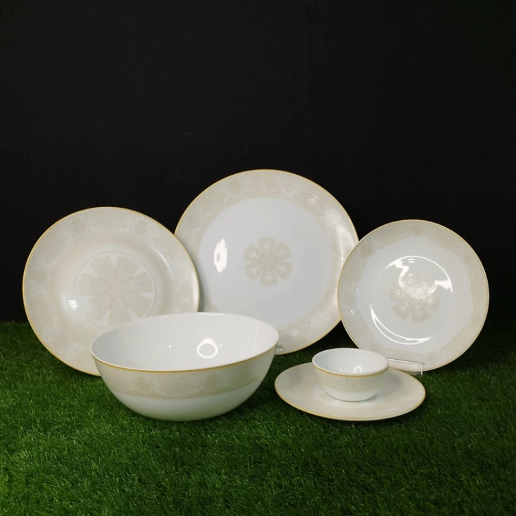 سرویس آرکوپال 26 پارچه مدل گرد طرح دبورا خاکستری یک سرویس آرکوپال تولید ایران می باشد که با یک قالب جدید در طرح و نقشی بسیار زیبا به سبک سرویس های اوپال اسپانیایی تولید شده این ظروف قابلیت تحمل دمای بالایی را دارند به همین دلیل قابلیت قرارگیری در مایکروویو را دارا می باشند همچنین این ظروف قابلیت شستشو در ماشین ظرفشویی را نیز دارند این سرویس شامل: 6 عدد بشقاب تخت برنج خوری 6 عدد بشقاب گود خورش خوری 6 عدد پیش دستی دسر خوری 6 عدد پیاله ماست خوری 1 عدد دیس 1 عدد کاسه سالاد بزرگ می باشد که در یک بسته بندی بسیار زیبا و با دوام قرار میگیرد