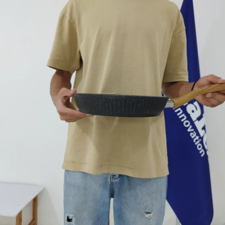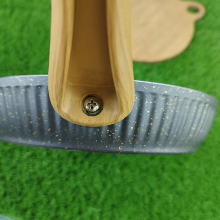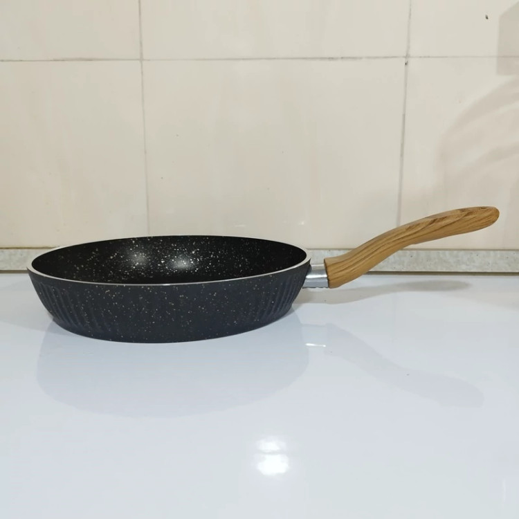 با دسته ای از جنس باکالیت نسوز که طراحی شبیه به چوب دارد و باعث زیبایی چندین برابری این تابه ی پر کاربرد شده