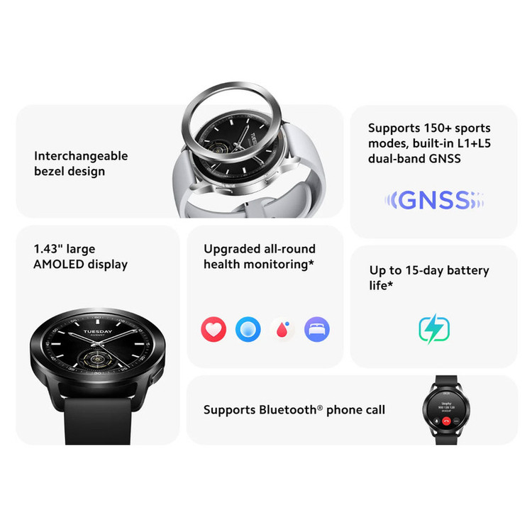 قابلیتهای ساعت هوشمند : صفحه نمایش لمسی , قابلیت مکالمه از طریق بلوتوث