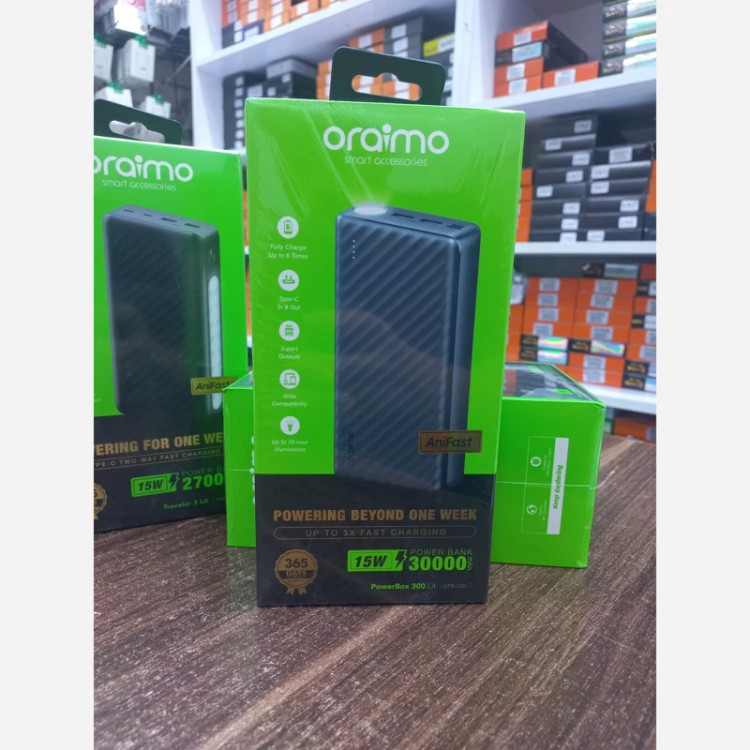 پاوربانک30ه 5w اورایمو با ظرفیت 30000mAh مدل powerbox 300 litپاوربانک 15w اورایمو با ظرفیت 30000mAh مدل powerbox 300 lit