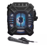 اسپیکر بلوتوث قابل حمل مدل KTX-1222 با سایز بسیار امکان حمل راحت آن را برای شما بهمراه می آورد. کیفیت صدای مطلوب، جنس مستحکم و پشتیبانی از کابل AUX و کارت حافظه Micro SD از دیگر امکانات این اسپیکر میباشد. به همراه این کالا یک عدد میکروفون سیم دار قرارداده شده تا لذت استفاده از این اسپیکر بلوتوثی بیشتر شود.