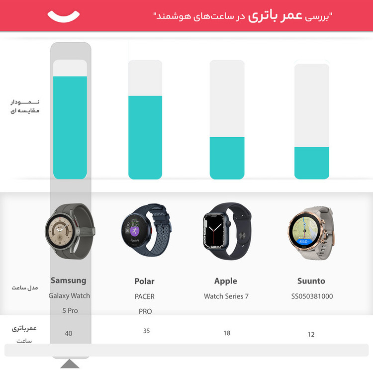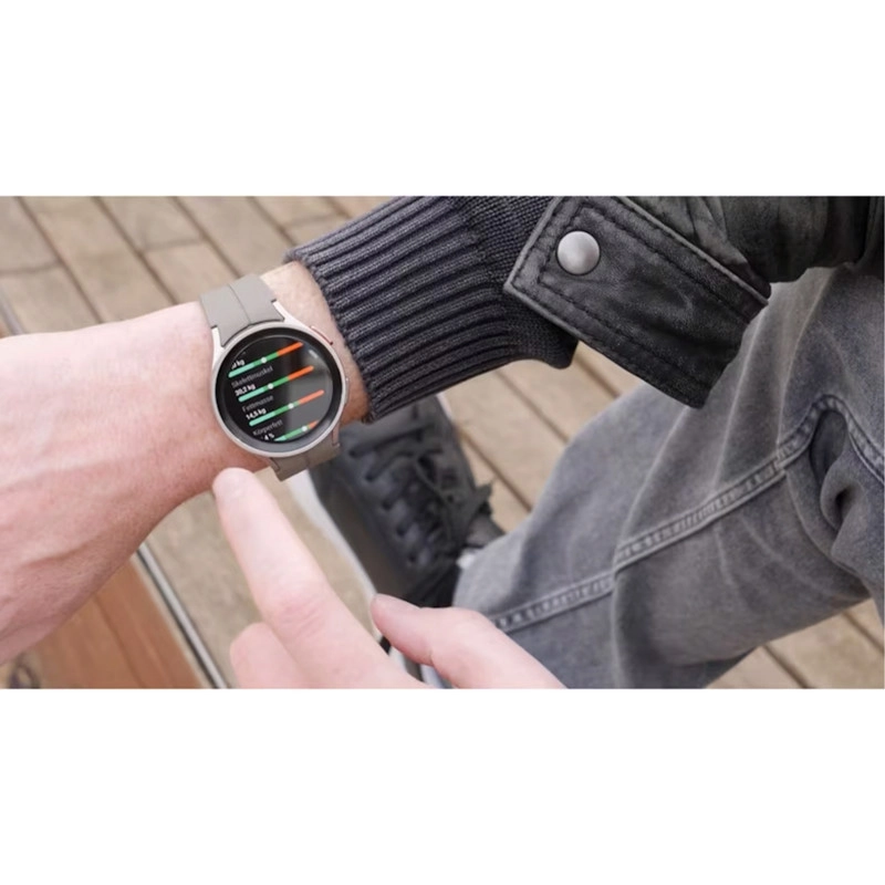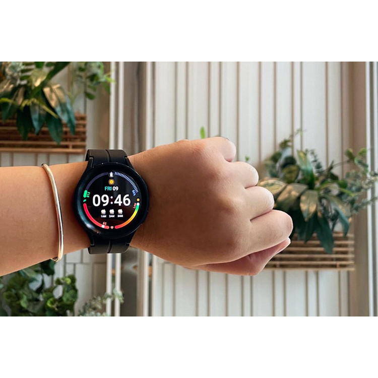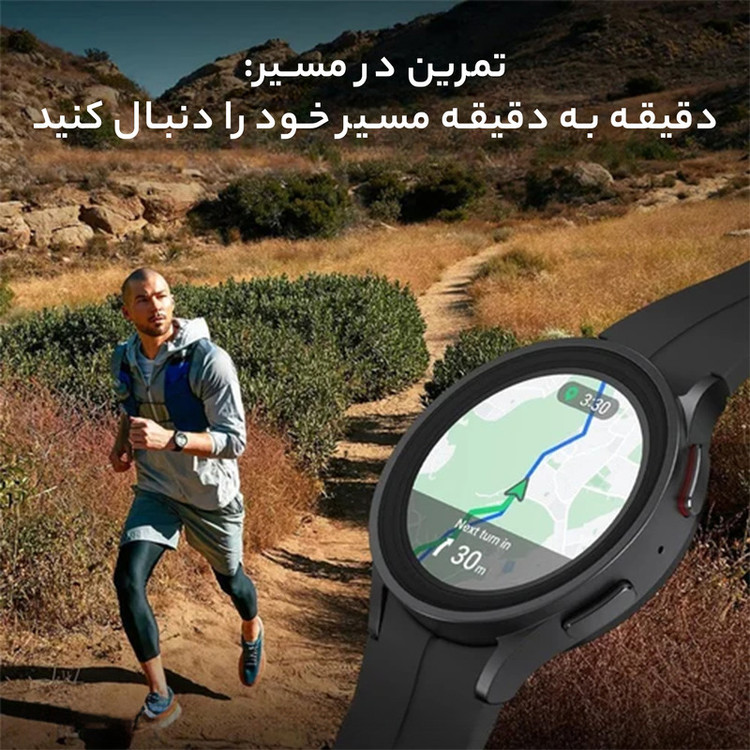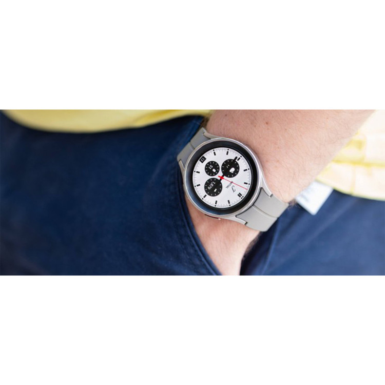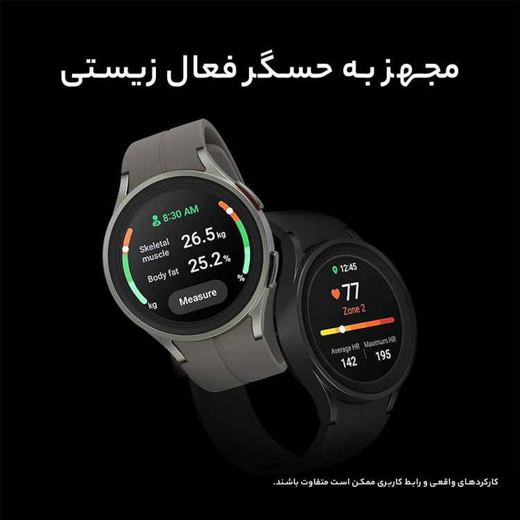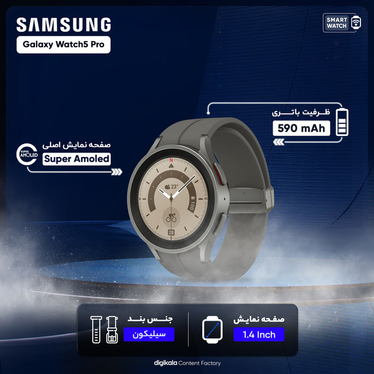 ساعتهای هوشمند سامسونگ، همواره توانستهاند با بهره بردن از مشخصات فنی مناسب، عملکرد بسیار خوبی را بهنمایش بگذارند. سامسونگ Galaxy Watch5 Pro هم یکی از جدیدترین ساعتهای هوشمند این شرکت است که به نسبت مدل استاندارد، مشخصات قدرتمندتر و البته سبک طراحی جذابتری را با خود به همراه دارد. طراحی و رنگبندی در نظر گرفته شده برای این ساعت هوشمند سبب شده تا در کنار حالت اسپرت، حس و حال یک ساعت رسمی و رده بالا را بهخوبی بهشما میدهد. متریال بسیار باکیفیت و البته تکنولوژی ساخت پیشرفته این امکان را فراهم کرده است تا Galaxy Watch 5Pro در برابر آب تا عمق 50 متری مقاوم باشد. با این تفاسیر میتوانید بهراحتی از این ساعت هوشمند در شرایط جوی متنوع و حتی ورزشهای آبی استفاده کنید و هیچ نگرانی از بابت آسیب رسیدن به آن نداشته باشید. صفحهنمایش با ابعاد 1.4 اینچ و رزولوشن 450×450 پیکسل از نوع سوپرامولد که توانایی نمایش 321 پیکسل در هر اینچ را دارد، سبب شده تا کیفیت تصویر بسیار فوقالعادهای را شاهد باشید و در شرایط نوری متنوع هم وضوح تصویر بسیار خوبی دارد. پردازنده اختصاص اگزینوس W920 شرکت سامسونگ هم این امکان را فراهم کرده است که در کنار پشتیبانی از قابلیتهای بسیار جذاب، عملکرد بسیار سریع و روانی در اجرای برنامههای کاربردی و محبوب ساعتهای هوشمند داشته باشد. میزان رم 1.5 گیگابایت و حافظه داخلی 16 گیگابایت کاملا خوبی برای این ساعت هوشمند است که فضای بسیار مناسب و کافی را در اختیار شما قرار میدهد. در کنار قابلیتهای متعددی که این ساعت دارد، میتوانیم به قابلیت بسیار جذاب سنجش دمای بدن اشاره کنیم. در بخش باتری هم، Galaxy Watch5 Pro به باتری قدرتمندتر 590 میلیآمپرساعت به نسبت مدل استاندارد مجهز شده است. باتری که به ازای هر بار شارژ صد درصدی، طول عمر مفید (زمان آماده بهکار) قابلی قبولی را ارائه میکند.