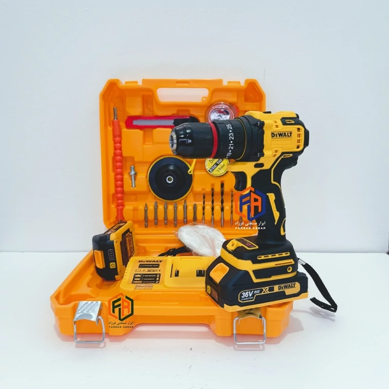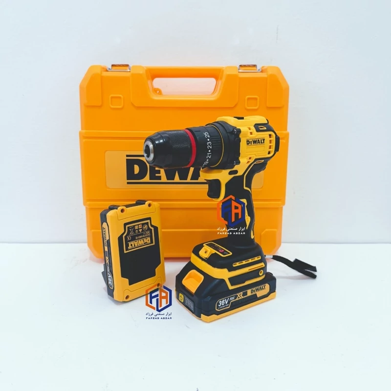 دریل شارژی دیوالت 36 ولت موتور براشلس سه نظام فلزی پولیش دار DEWALT 36V