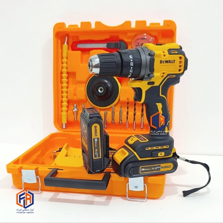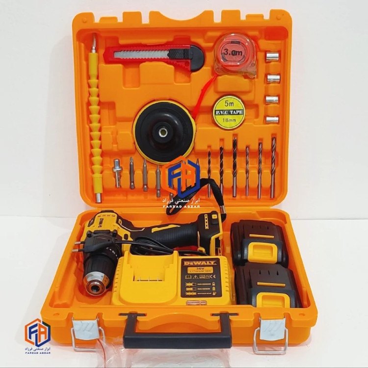 دریل شارژی دیوالت 36 ولت ساخت کشور چین سفارش کشور آلمان ساخته شده است، این محصول های کپی درجه 1 می باشد. دریل شارژی دیوالت دارای موتور براشلس است، این محصول چهار کاره دریل ،چکش و پیچ بند و پولیش می باشد ،این محصول سرعت گردش آزاد 3000دور و تعداد 1500 ضربه در دقیقه را نیز دارد.این محصول دارای 2 عدد باتری 5 سلولی می باشد که هر کدام از باتریا نشانگر شارژ باتری دارند. همانطور که مشاهده میکنید جهت استفاده آسان تر و راحت تر به همراه این محصول پک ابزار نیز تعبیه شده است، مانند پد پولیش، رابط انعطاف ،سری مته،متر....دارد چپ گرد و راست گرد ،چراغ دید ،خوش دست بودن ،وزن مناسب از دیگر ویژگی های این محصول می باشد ،اگر قصد خرید دریل شارژی برای مصارف خانگی و نیمه صنعتی، کابینت سازی، کناف.... را دارید پیشنهاد ما این محصول می باشد