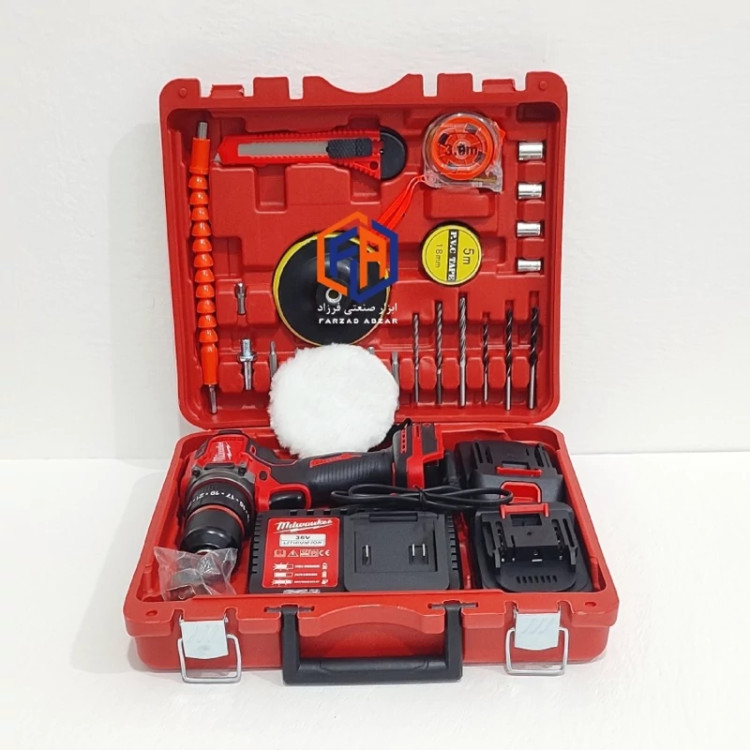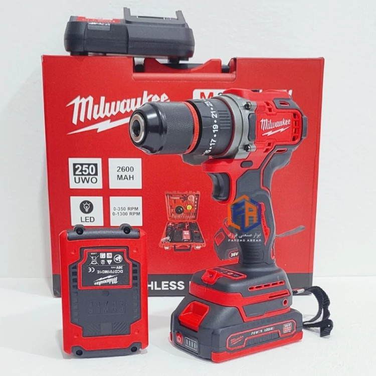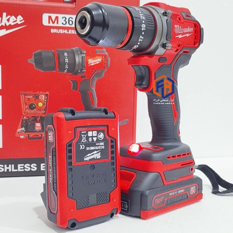 دریل شارژی میلواکی 36 ولت مدل DCD701MD01E ساخت کشور چین سفارش کشور آلمان ساخته شده است، این محصول های کپی درجه 1 می باشد. دریل شارژی میلواکی دارای موتور براشلس است، این محصول چهار کاره دریل ،چکش و پیچ بند و پولیش می باشد همچنين دارای گیربکس دو حالته نیز می باشد ،این محصول سرعت گردش آزاد 1300 دور در دقیقه را نیز دارد.این محصول دارای 2 عدد باتری 5 سلولی می باشد که هر کدام از باتریا نشانگر شارژ باتری دارند.از پارامترهای دیگر این محصول می توان به سه نظام 13 میلیمتری فلزی ،سیم پیچ مسی، چراغ دید،چپ گرد و راست گرد،قابلیت کنترل سرعت نیز اشاره کرد همانطور که مشاهده میکنید جهت استفاده آسان تر و راحت تر به همراه این محصول پک ابزار نیز تعبیه شده است، مانند پد پولیش، رابط انعطاف ،سری مته،متر….دارد چپ گرد و راست گرد ،چراغ دید ،خوش دست بودن ،وزن مناسب از دیگر ویژگی های این محصول می باشد ،اگر قصد خرید دریل شارژی برای مصارف خانگی و نیمه صنعتی، کابینت سازی، کناف…. را دارید پیشنهاد ما این محصول می باشد