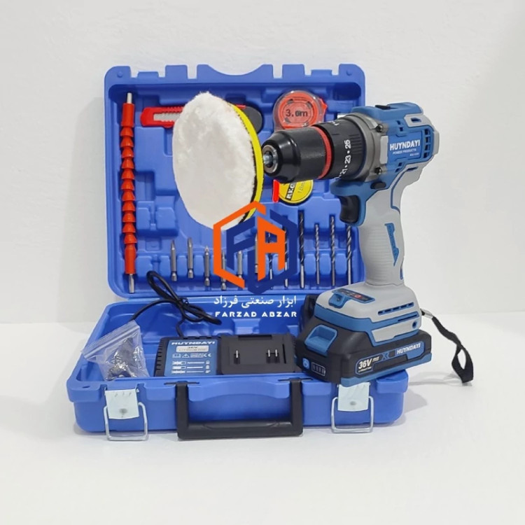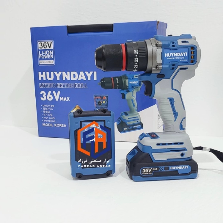 یکی از ابزارهای مورد نیاز بیشتر مشاغل امروزه و مصارف خانگی داشتن یک دریل شارژی قیمت مناسب است، دریل شارژی به لحاظ اینکه کارایی آسان، جابجایی آسانی که دارد در سال های اخیر فروش چشمگیری داشته است.دریل شارژی هیوندای 36 ولت مدل XDG-1036 ساخت کشور چین سفارش کشور آلمان ساخته شده است، این محصول های کپی درجه 1 می باشد. دریل شارژی هیوندای دارای موتور براشلس است، این محصول چهار کاره دریل ،چکش و پیچ بند و پولیش می باشد همچنين دارای گیربکس دو حالته نیز می باشد ،این محصول سرعت گردش آزاد 1300 دور در دقیقه را نیز دارد.این محصول دارای 2 عدد باتری 5 سلولی می باشد که هر کدام از باتریا نشانگر شارژ باتری دارند.از پارامترهای دیگر این محصول می توان به سه نظام 13 میلیمتری فلزی ،سیم پیچ مسی، چراغ دید،چپ گرد و راست گرد،قابلیت کنترل سرعت نیز اشاره کرد همانطور که مشاهده میکنید جهت استفاده آسان تر و راحت تر به همراه این محصول پک ابزار نیز تعبیه شده است، مانند پد پولیش، رابط انعطاف ،سری مته،متر….دارد چپ گرد و راست گرد ،چراغ دید ،خوش دست بودن ،وزن مناسب از دیگر ویژگی های این محصول می باشد ،اگر قصد خرید دریل شارژی برای مصارف خانگی و نیمه صنعتی، کابینت سازی، کناف…. را دارید پیشنهاد ما این محصول می باشد