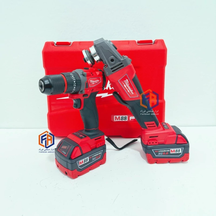 ست دو قلوی دریل شارژی و فرز شارژی میلواکی موتور براشلس مدل M88
