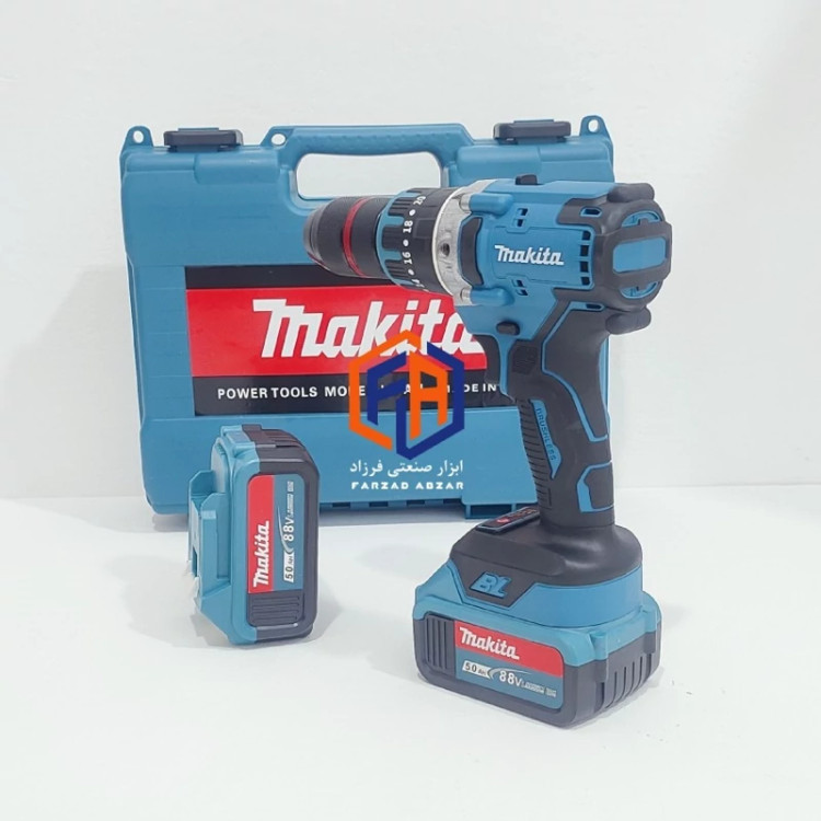 دریل شارژی ماکیتا 88 ولت ساخت کشور چین سفارش کشور آلمان ساخته شده است، این محصول های کپی درجه 1 می باشد. دریل شارژی ماکیتا دارای موتور براشلس است، این محصول سه کاره دریل ،چکش و پیچ بند می باشد همچنين دارای گیربکس دو حالته نیز می باشد ،این محصول سرعت گردش آزاد 1300 دور در دقیقه را نیز دارد.این محصول دارای 2 عدد باتری 10 سلولی می باشد. از پارامترهای دیگر این محصول می توان به سه نظام 13 میلیمتری فلزی ،سیم پیچ مسی، چراغ دید،چپ گرد و راست گرد،قابلیت کنترل سرعت نیز اشاره کرد،اگر قصد خرید دریل شارژی داذید پیشنهاد ما این محصول می باشد