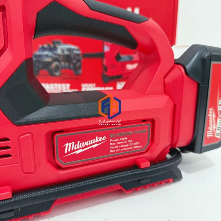 امروزه شرکت های تولید کننده ابزار به دلیل سهولت استفاده و حمل ابزارهای شارژی را تولید و عرضه میکنند، شرکت میلواکی چین پمپ باد شارژی را تولید و عرضه نموده که از قابلیت های بالای برخوردار می باشد پمپ باد شارژی میلواکی دارای 300 پاسکال فشار با توان 220 وات می باشد، از دیگر قابلیت های این پمپ باد شارژی می توان به قابلیت تنظیم فشار، قابلیت اتصال به فندکی ،صفحه نمایش دیجیتالی، چراغ دید،می باشد، این محصول با باتری و فندکی ماشین کار میکند و دارای 2 عدد باتری 88 ولت 10 سلولی است. به همراه این محصول سری مختلف پمپ باد،و تبدیل به فندکی را داراست،اگر قصد پمپ باد شارژی دارید پیشنهاد ما این محصول می باشد
