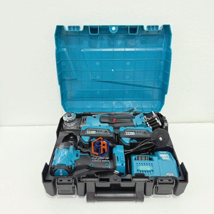 امروزه با توجه به اینکه ابزارهای شارژی از لحاظ کارکرد و سهولت استفاده بیشتر مورد توجه کاربران قرار گرفته شرکت های تولید کننده ابزار ست های دو قلو شارژی تولید و عرضه میکنند. شرکت ماکیتا چین ست دو قلو فرز شارژی و بکس شارژی مدل XC5.Oرا تولید نموده که از ویژگی های بالای برخوردار می باشد، موتور هر دو دستگاه این بکس براشلس بوده و دارای سیم پیچ مسی می باشند،فرز شارژی دارای قابلیت کنترل سرعت بوده و سرعت گردش آزاد 8500 دور در دقیقه را داراست، سایز صفحه این محصول 125 میلیمتری بوده و دارای سیستم خنک کننده موتور نیز می باشد، بکس شارژی ماکیتا دارای حالت چپ گرد و راست می باشد و سرعت گردش آزاد 3500 دور و 2400 تقه را در دقیقه داراست، این بکس شارژی دارای چراغ دید نیز می باشد، هر دو محصول بدنه ارگونومیک دارند، به همراه این محصول 2 عدد باتری 10 سلولی 88 ولت دارد، همچنین این باکس دارای متعلقات محافظ، آچار، دسته کمکی فرز شارژی و بند آویز یه عدد لقمه بکس شارژی نیز دارد،اگر قصد خرید فرز شارژی و بکس شارژی دارید پیشنهاد ما این محصول می باشد