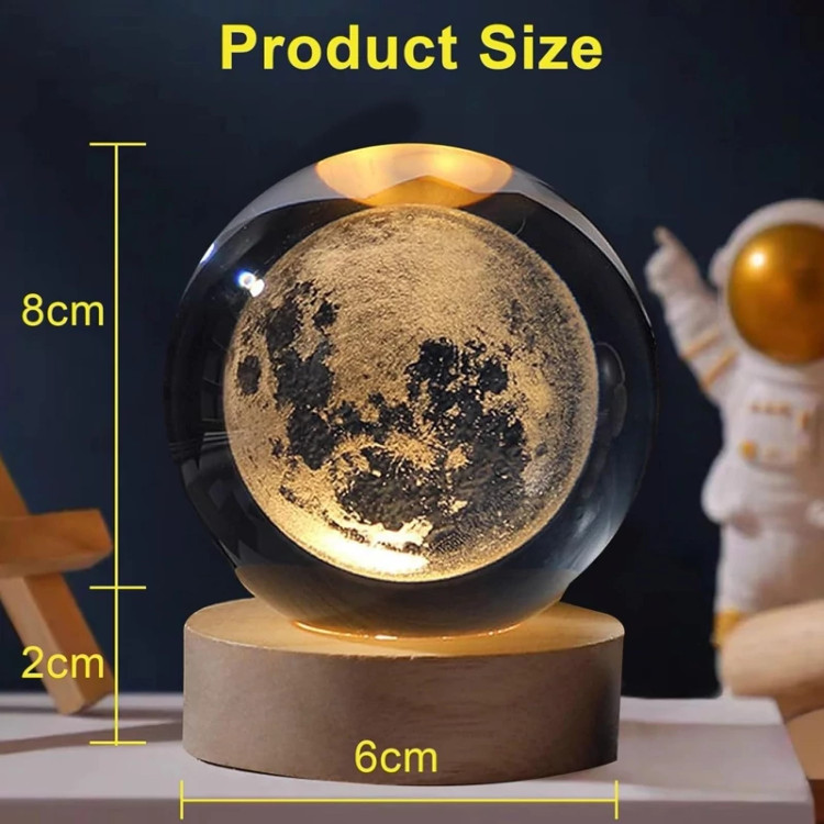 چراغ خواب گوی کریستالی طرح ماه سایز 8
