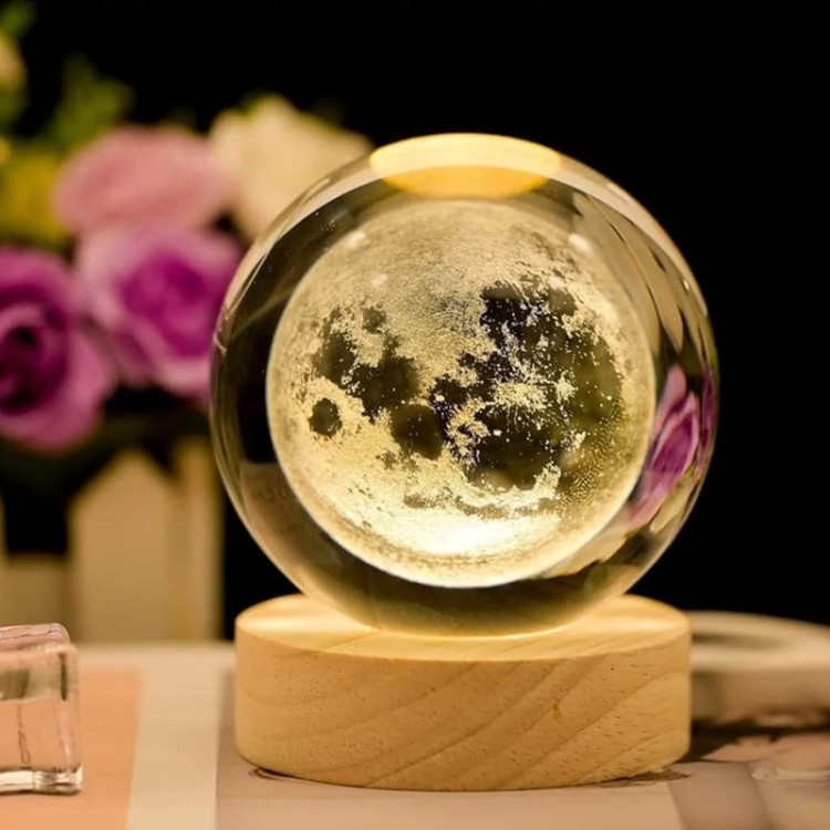 چراغ خواب گوی کریستالی طرح ماه که ترکیبی زیبا از طراحی و نوره یکی از بهترین هدایایی به شمار میره که میتونین به عنوان کادو تولد هم به عزیزان و دوستانتون هدیه بدین. این گوی ها که با نام گوی شیشه ای هم شناخته میشن قطعاتی شفاف و براق هستند. از گوی های کریستالی میتونین در طراحی و دکوراسیون اتاق و محل کارتون هم استفاده کنین؛ چرا که وسایل تزئینی جذابی هستن. موسیقی در نظر گرفته شده برای گوی های شیشه ای حس آرامش خاصی رو به شما انتقال میده و همین موضوع موجب شده تا گوی های کریستالی محبوبیت قابل توجهی داشته باشند.