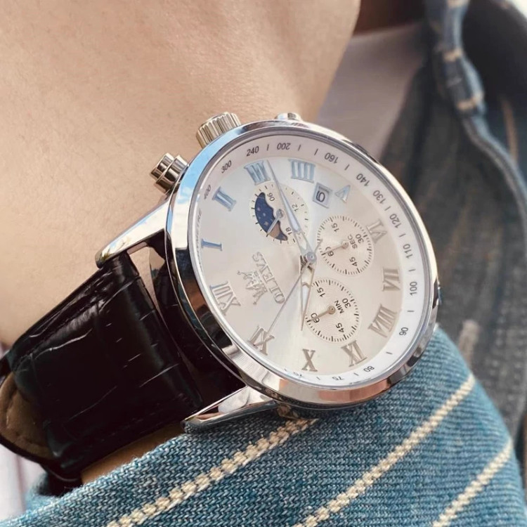 ضد آب 3ATM((این برند ساعت لوکس و لاکچری محسوب میشه و در رقابت با ساعت هایی مثل رولکس با قیمتی خیلی کمتر و اقتصادی طراحی شده و مناسب استخر و شنا نیست و برای محیط آبی طراحی نشده اما ضد آب قوی هست ،زیر آب با دمای معمولی بگیرید ،بشورید ،زیر باران ،در لیوان آب غوطه ور کنید و کلا برای انجام کارهای روزمره ضد آب قوی است و مشکلی نداره، اما داخل آب به هیچ وجه نباید با دکمه هاش بازی کنید و بخار آب و آب جوش استفاده نشود))