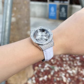 هر قطعه از این دیاموندها با دقت و هنرمندی خاصی در بدنه ساعت قرار گرفته است تا درخشش و جذابیت آن را به حداکثر برساند.