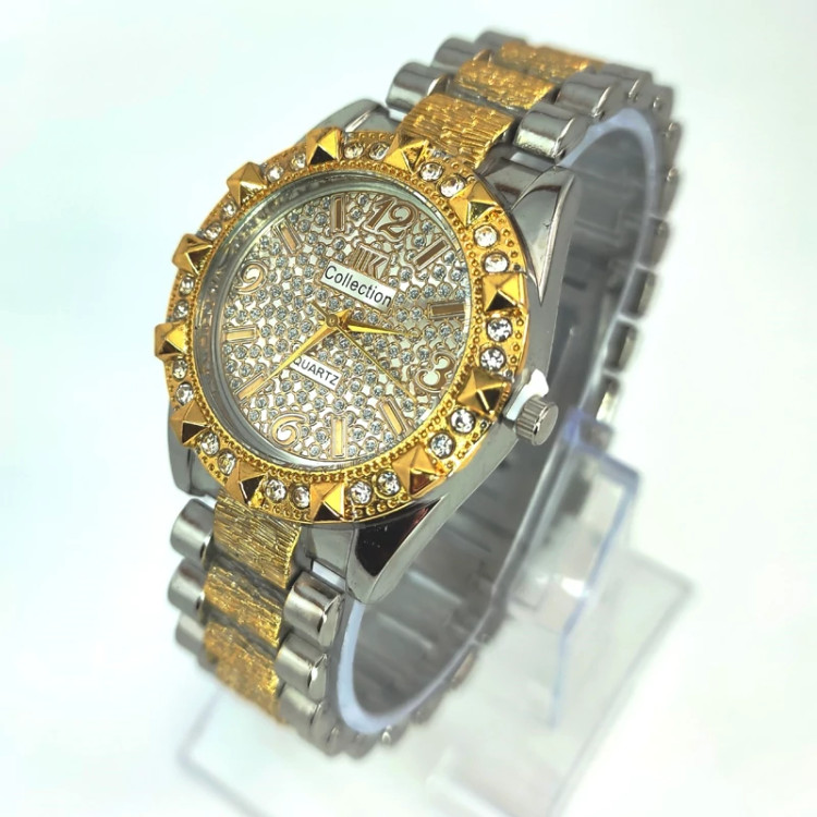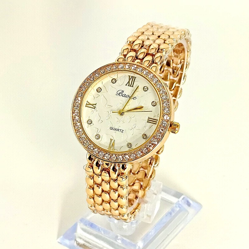 ساعت مچی زنانه عقربه ای نگین دار والار ظریف طلایی صفحه گرد و صفحه بیضی شیک و مجلسی و کادویی