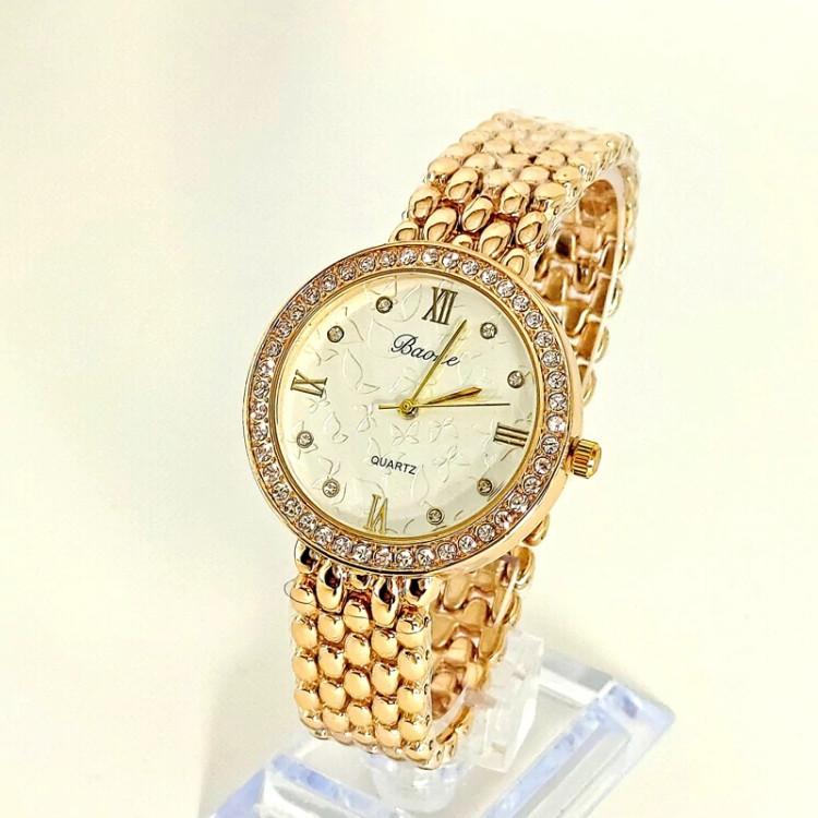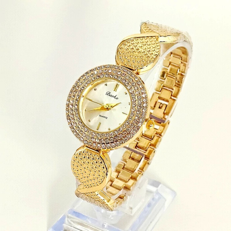 ساعت زنانه عقربه ای ساعت مچی زنانه دخترانه طلایی طرح سه موتوره