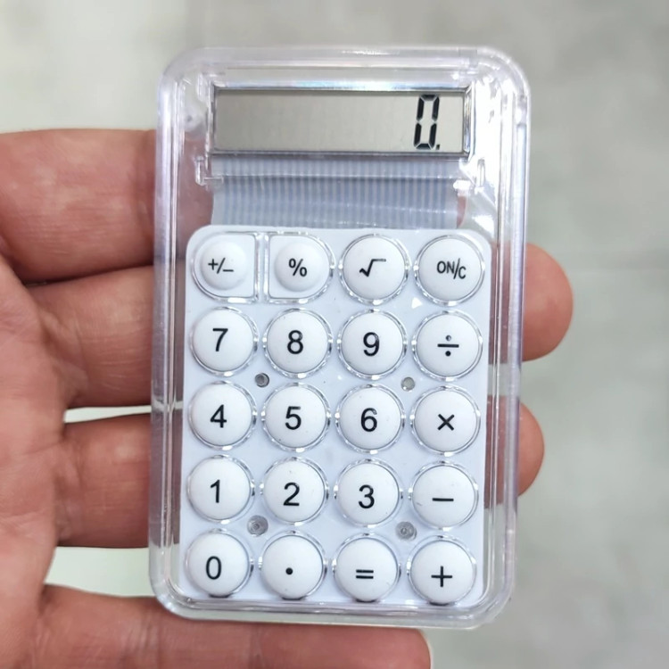 ماشین حساب شفاف شیشه ای جیبی پاستیلی ( خرید عمده و تکی ماشین حساب گناوه مارکت )
