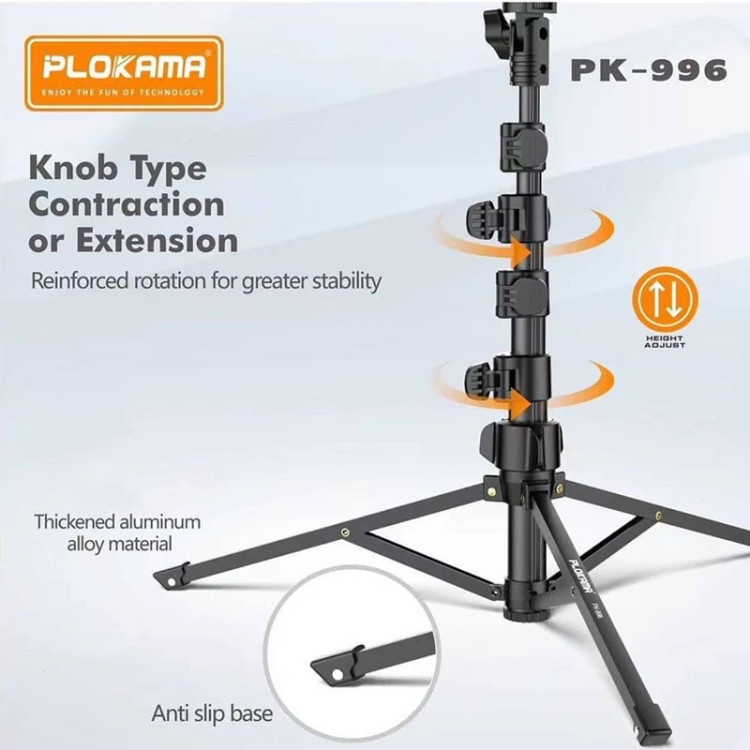 سه پایه موبایل و دوربین حرفه ای پلوکاما pk996 ( خرید عمده سه پایه گناوه مارکت )