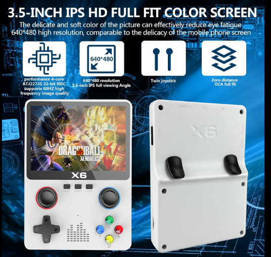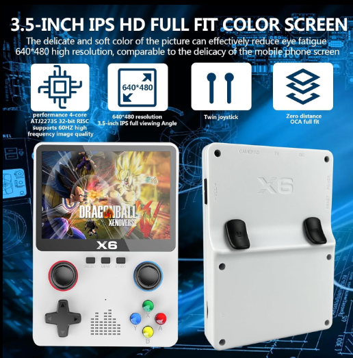 کنسول قابل حمل Xx6 وسیلهای برای یادآوری و تجربه ی مجدد بازیهای نوستالژی و شیرین قدیمی است ولی با کیفیت بالا. این کنسول دارای یک صفحه نمایش 3.5 اینچی از نوع IPS است که کیفیت تصویر بسیار جذاب و شفافی ارائه میدهد. با پردازندهی پرقدرت و رم مطلوب، این کنسول به شما تجربهی بازیهای روان و بدون لگ را ارائه میدهد. شما میتوانید بازیهای محبوبتان را در حافظه داخلی ذخیره و از تنوع بیشتری در بازیهای خود لذت ببرید.