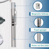 استفاده از چراغ قوه در مطب های پزشکی برای ویزیت گوش و حلق و بینی از دیرباز یک امر عادی بوده است. اما استفاد از یک چراغ سبک با نور قدرتمند می تواند تا اندازه زیادی فضای داخل دهان و گوش را برای ویزیت روشن تر و تشخیص را بسیار راحت تر کند. روی بدنه یک خط کش و یک جدول مقایسه مقیاس مردمک نیز به چشم می خورد.