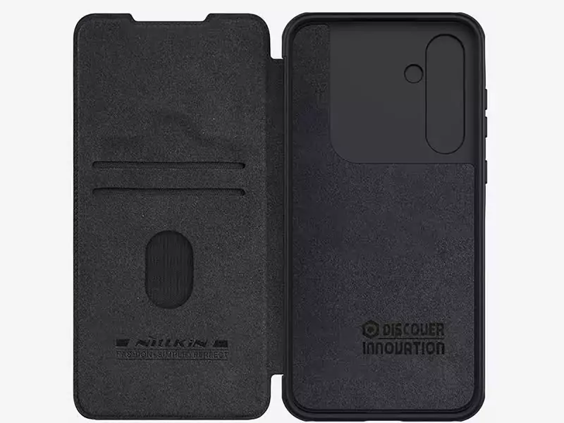 داخل درب کیف نیلکین Qin Pro Series Leather case فضایی برای قرار دادن کارتهای بانکی یا شناسایی طراحی شده است. با تهیه این قاب محافظ برای سامسونگ گلکسی A55، علاوه بر حفاظت از گوشی، میتوانید کارتهای خود را نیز به راحتی حمل کنید.