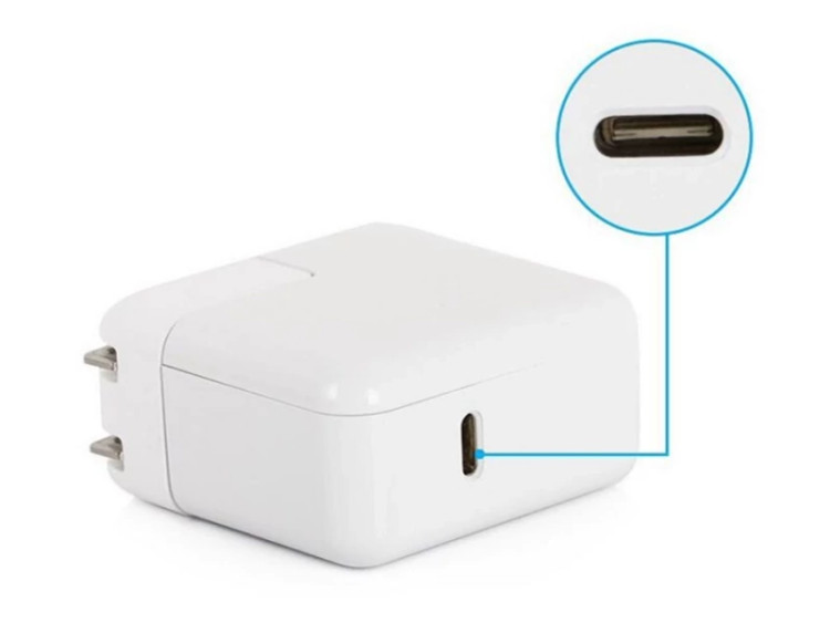 آداپتور اصلی اپل دارای درگاه تایپ سی بوده و توانی برابر با 61 وات دارد و فست شارژ است؛ با هر دستگاه دارای پورت USB-C سازگار است. البته اپل توصیه کرده است که این شارژر با مک بوک پرو 13 اینچی با تاندربولت 3 (USB-C) بهترین عملکرد را دارد و کاملا با آن سازگار است.